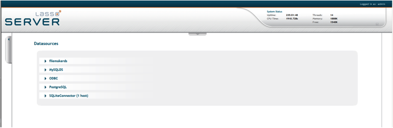 Log in to the Datasources page in Lasso Administration (http://localhost/lasso9/Admin/ds) to see a list of available datasources.