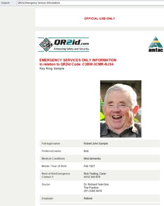 From a police perspective, it is unlikely that the QR2id Code will be scanned in the field, but being able to radio the QR2id Serial Number into the Communications Centre and have it decoded via the website to obtain information will save a great deal of time and resources, and potentially hours of anxiety for loved ones wondering what has happened.