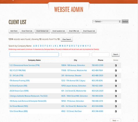 Email notifications - to Customer Rewards and Client/Advertiser contact registration, report forwarding to admin, artwork upload and coupon book proof page forwarding to Sales Reps and Admin