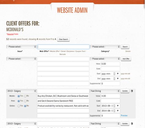 Process handling - Customer Rewards signup for product registration, PDF coupons, and tracking total coupon savings; Client/Advertiser contact registration for coupon redemption report and account updates