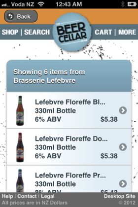AJAX based shopping cart code. User is no longer dumped to the shopping cart page when a cart action is performed (as per our 'current' website - http://www.beerstore.co.nz in Lasso 8.5.6). Mobile site also rocks... Just access the same url with an iPhone or Android device. Multi currency / geography support (access http://audev.beercellar.com for the same site code but with Australian specific info). Note: This website is incomplete, and will only be publicly accessible for the next 48 hours.