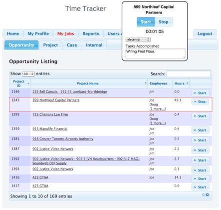 Time Tracking for Multiple Job Types, Multiple Employee types, Full Reporting in display and download for admins.