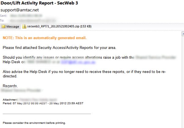 The process makes routine reports extremely simple to schedule at the required intervals, with copies distributed to those that need them, when they want them. The structure of the reports is much cleaner than is possible with the native security software, and using the SecWeb portal to create the reports eliminates the need for training operators on the native software.
