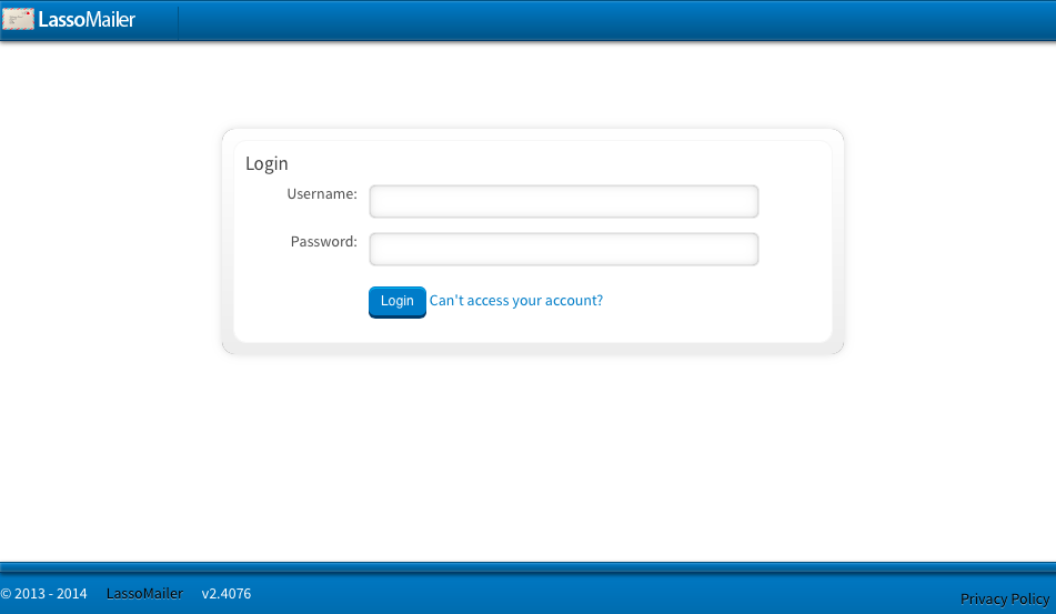 Getting started: Your server administrator will have installed LassoMailer on your web server, and connected it to your email server. Start by logging in with the user account that it's been set up with.